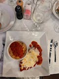 Spaghetti pasta sautéed in homemade meat sauce and topped with marinara sauce.